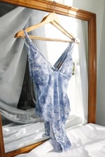 The At Last One Piece Bikini Set is made of two-way stretch vintage polyester spandex & lined with elastic banding. The top features openings in each cup for the option of adding your own padding. This set features adjustable tie up straps/bust.