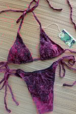 The Bikini Set can be ordered as a classic triangle top with a matching cheeky tie or boyshort bottom. Both pieces are made of two-way stretch, reclaimed vintage polyester spandex, and lined with elastic banding.♥ Includes style inspo photos-