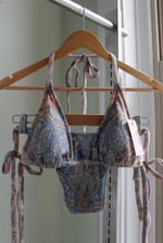 Handmade in small batches in the Fingerlakes, N.Y. Artfully crafted exclusively of reclaimed materials. Each one is unique from the next. Custom orders available @sydneymarycustombikinis on Instagram ❀