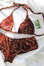 ♲ Red Paisley Velvet Bikini Set - L