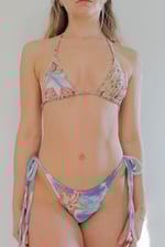The Super Start Bikini Set is a classic triangle top with a matching cheeky tie bottom made of two-way stretch 100% cotton and lined with elastic banding. Features openings in each cup for the option of adding your own padding and adjustable tie straps.